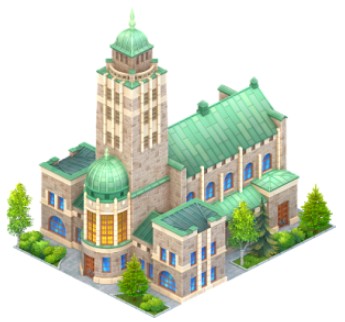 The main reward is the Kallio Church: 4200 coins, 1-3 candies, and 1-3 energy every 24 hours; size 7×9, can be placed anywhere.