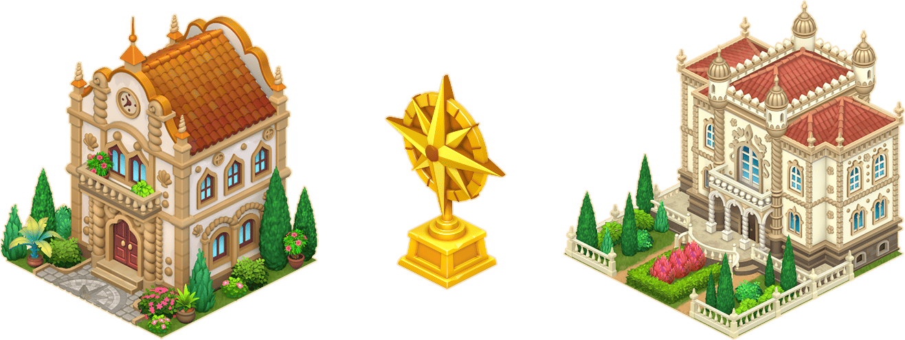 - Palace of the Portuguese Noble: 3900 coins, 3–5 energy, 1 useful item, 3–4 candies every 22h